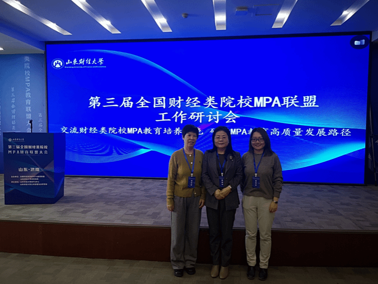 12月8日到9日,威尼斯官网院长郭淑芬、学院办公室主任黄文敏、教师康义金一行参加了由全国财经类院校MPA教育联盟、山东财经大学研究生院主办,山东财经大学MPA中心、山东财经大学公共管理与法学学部承办的第三届全国财经类院校MPA教育联盟大会暨“数字时代公共治理变革与MPA教育高质量发展”研讨会。本次大会围绕“数字时代公共治理变革与MPA教育高质量发展”这个主题展开,来自中南财经政法大学、中央财经大学等19家财经院校的9499www威尼斯院长、MPA中心主任和有关老师参加了会议。