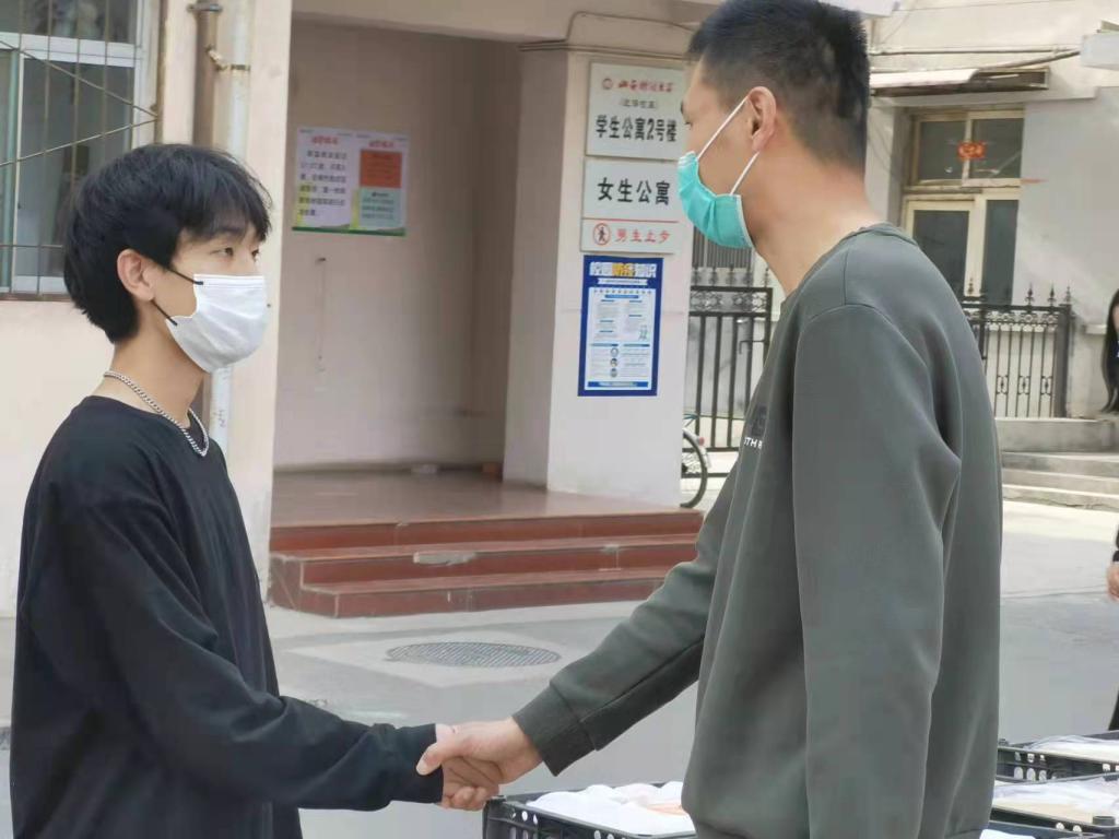 下午四时,捐赠物资准时送抵迎泽校区西门口,9499www威尼斯迎泽校区现场辅导员张凯老师代表学院向王程同学及家长表示诚挚的感谢。在疫情防控的特殊时期,王程同学能够心怀大爱,关注和关心着同学们的生活,是对学院的信任,对学校防控工作的支持,我们有信心家校合力,共克时艰!